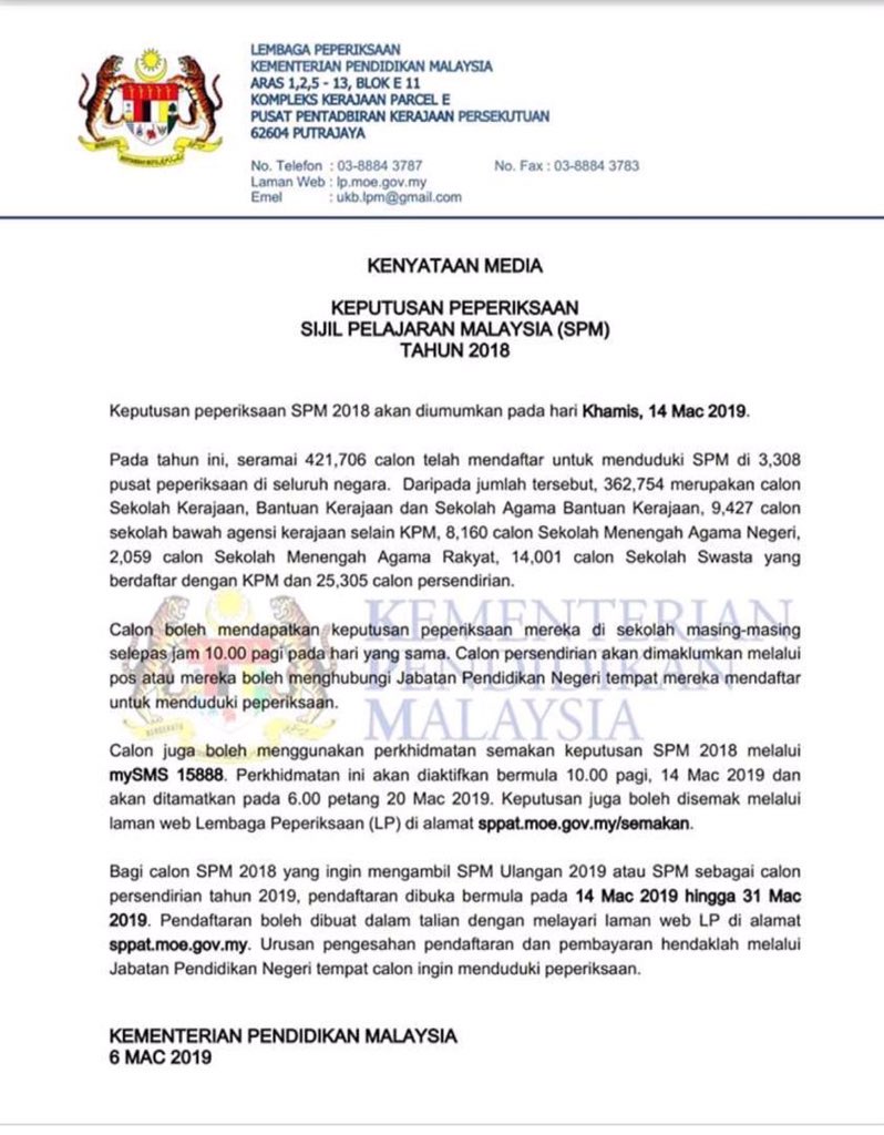 Kementerian Pendidikan Malaysia Kenyataan Akhbar Keputusan Peperiksaan Sijil Pelajaran Malaysia Spm Tahun 2014 Facebook
